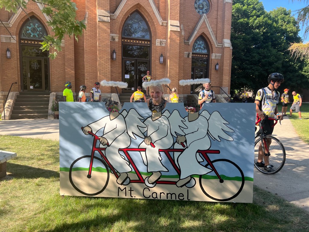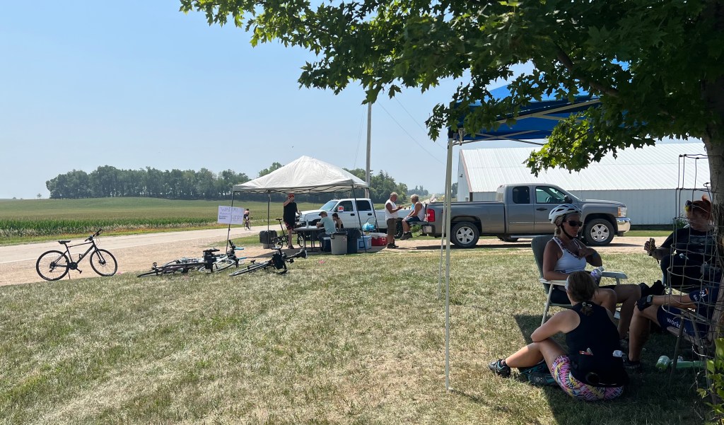 In this same yard, we also met 4 women from Chicago who we would continue to ride with for many more miles ahead. They referred to us as their “Pennsylvania friends,” and at the top of a never-ending climb we shared a silly moment together as we pressed our bodies up against a cold tank that riders uncovered earlier in the day. “I’m so hot,” we laughed. “I just want to put my face on it. What’s in this thing? Do you think it’s water or toxic chemicals?” Like the riders that came before us, we shared the tip with others as we yelled “biker on!” and continued our journey to Lake View, population 1,120, where we found grilled cheese sandwiches, frozen pickle pops, and a stocked ATM.