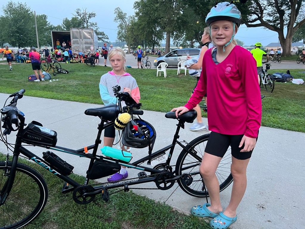 As we laid down for bed in Storm Lake after a physically draining day 1, I was doubtful we’d be able to proceed as planned. My husband was in bad shape, and I wasn’t sure how the girls’ spirits would be in the morning. None of us ate dinner because frankly we were too sick to stomach anything. Day 2 was supposed to be less intense at 59 miles and 1,875 feet of climb, and I awoke early with a nervous belly considering our options, including the idea of doing it alone with my youngest who was adamant we continue. Sleeping in to the lazy hour of 5:30am, she peeked her head out the tent window and asked, “Are we going to ride today?” We surveyed the entire family and everyone agreed they wanted to press on. My husband woke up feeling rested and filled with electrolytes thanks to the Gatorade we forced him to drink the evening prior.