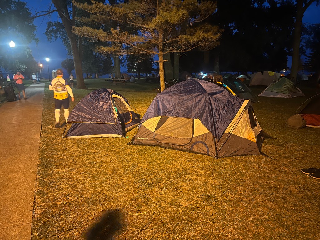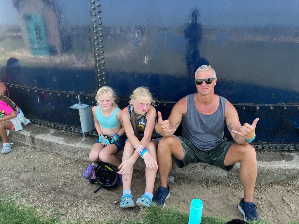 Now remember our plan to SAG (or the struggle bus as the girls called it) halfway through? Kids didn’t want to do it. When I tell you they were rock stars, they were more determined than my husband and I. By the time they started to lose patience, we had only 7 miles to go. After 11 hours of riding, we cheered when we entered Carroll, IA at 6:15pm and found our Pork Belly campground at Fairview Elementary school. Unlike the previous night, we arrived earlier and in ok-condition. “How are you guys?,” my parents assessed.